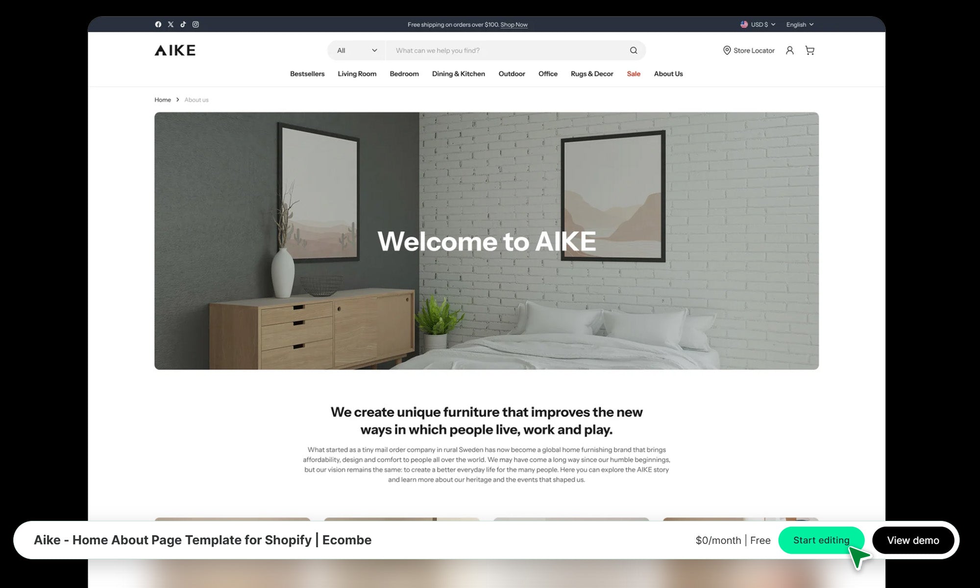 Aike - Home About Page Template for Shopify | Ecombe