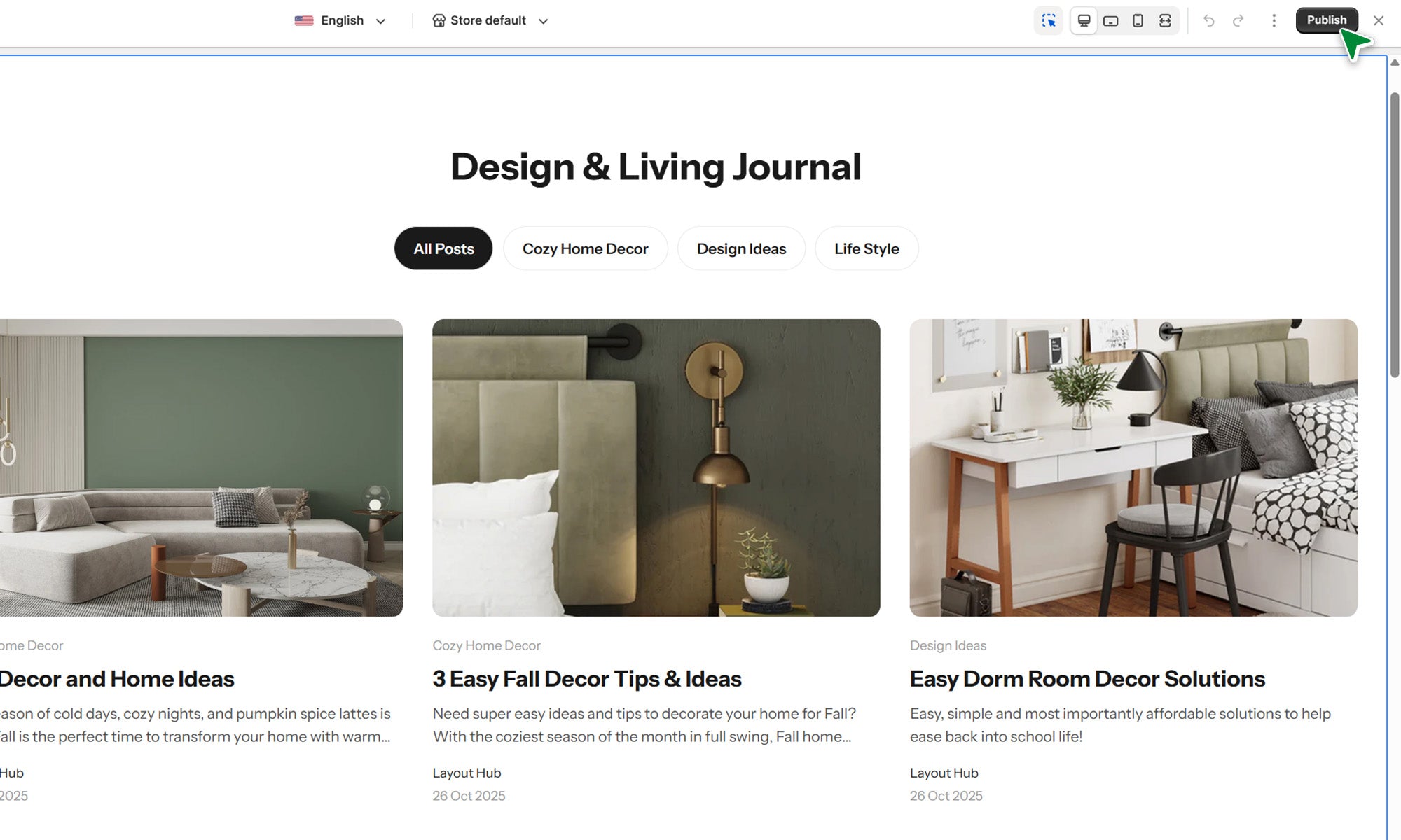 Present blog content in a clear layout that encourages readers to explore the content