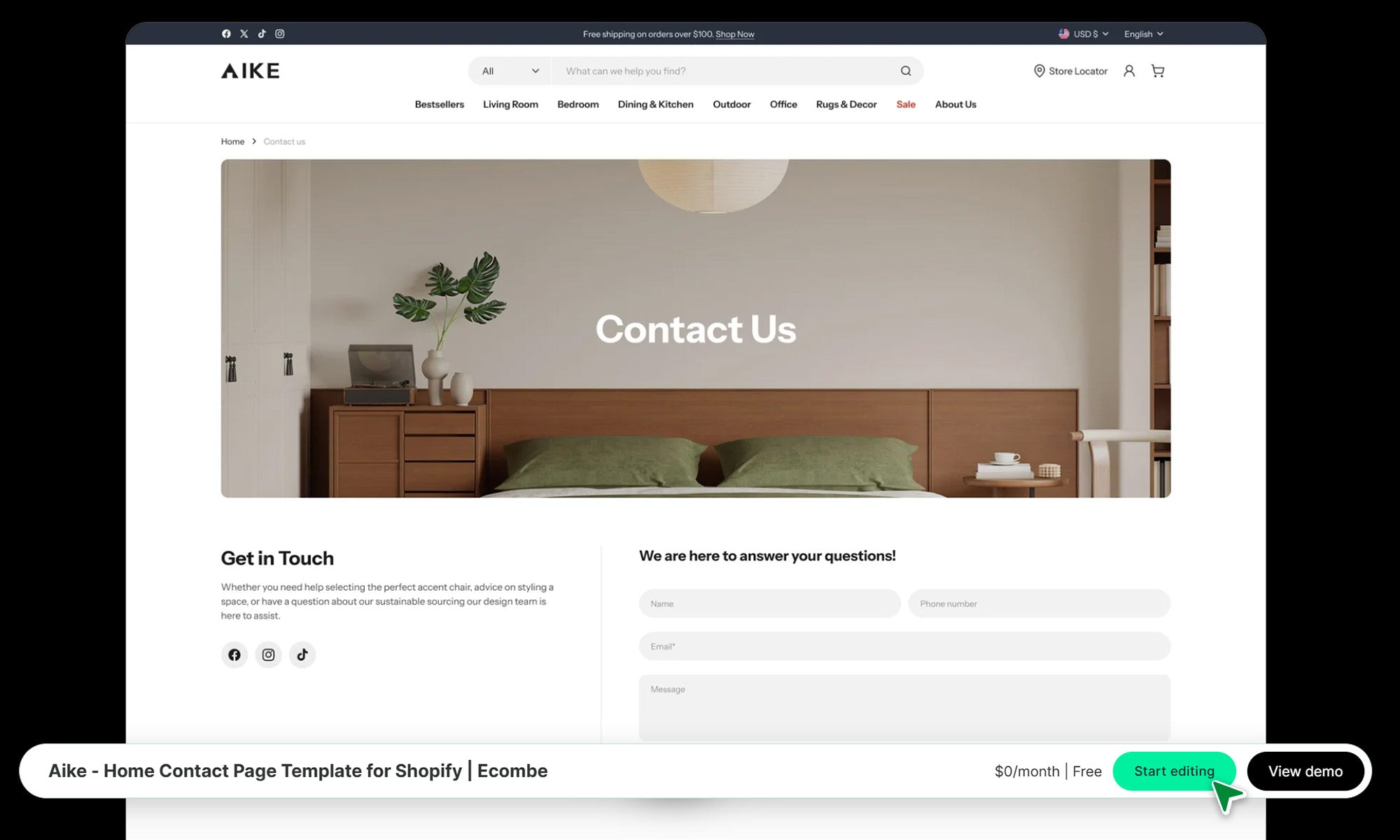 Aike Home Contact Page template is more than a simple contact form; it is a gateway to building lasting customer relationships for high-end Shopify decor stores. It seamlessly blends lifestyle imagery with intuitive functionality, ensuring that your premium audience feels heard and valued from their first inquiry.