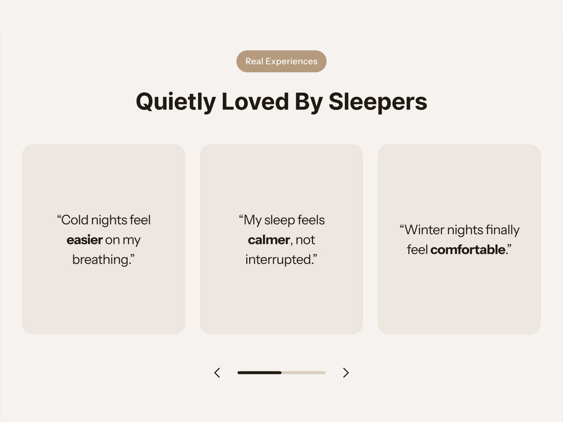 - Shoppers suffering from interrupted, dry, or uncomfortable sleep who browse slowly and are persuaded by how the product makes them feel, rather than by comparing technical stats.