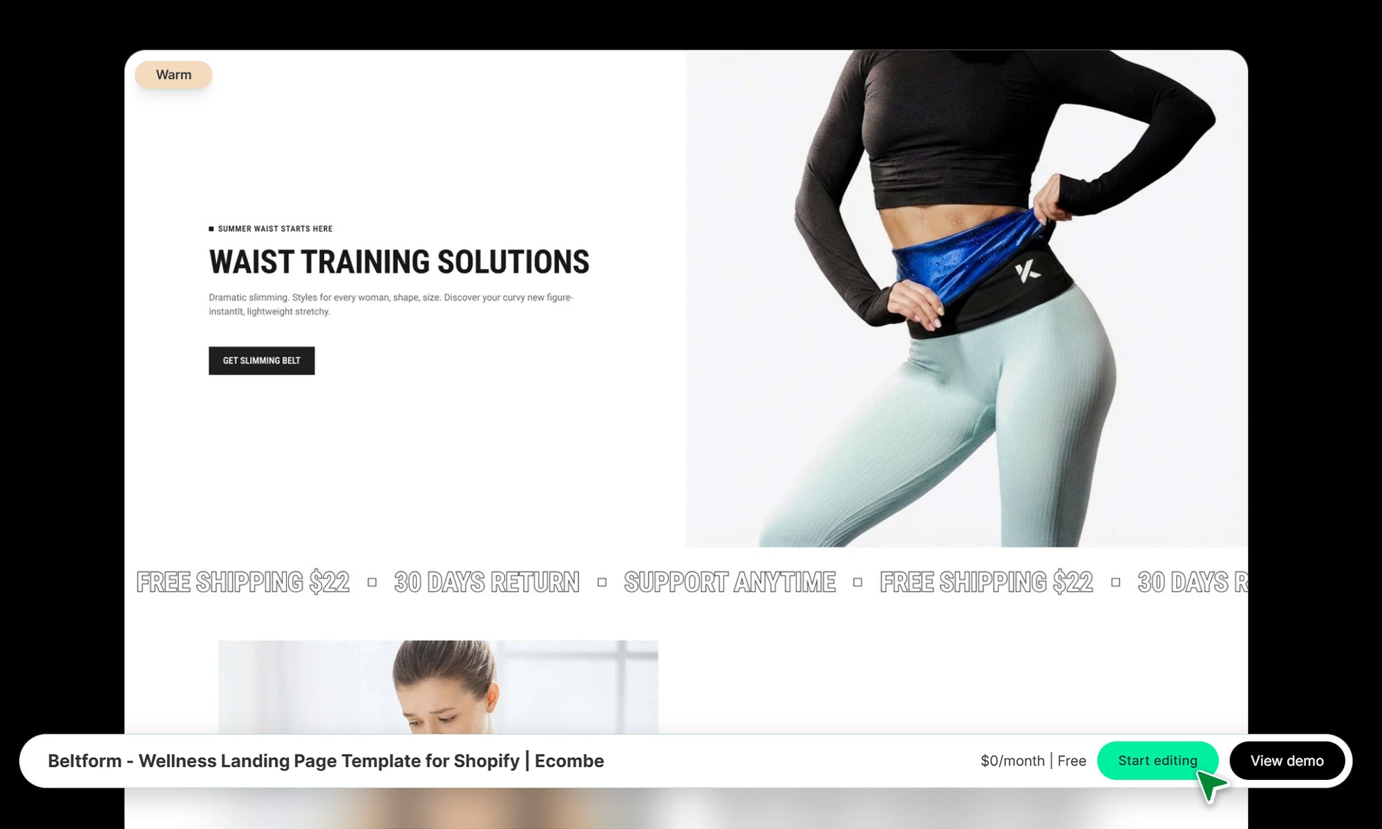 Beltform Wellness Landing Page is the summer-ready template designed for Shopify merchants selling body-shaping and fitness gear. It targets the modern, busy customers who want to refine their silhouette without intense gym routines. This template crafts a narrative of daily empowerment, moving shoppers from the frustration of stubborn waist fat to the confidence of a leaner, contoured look.