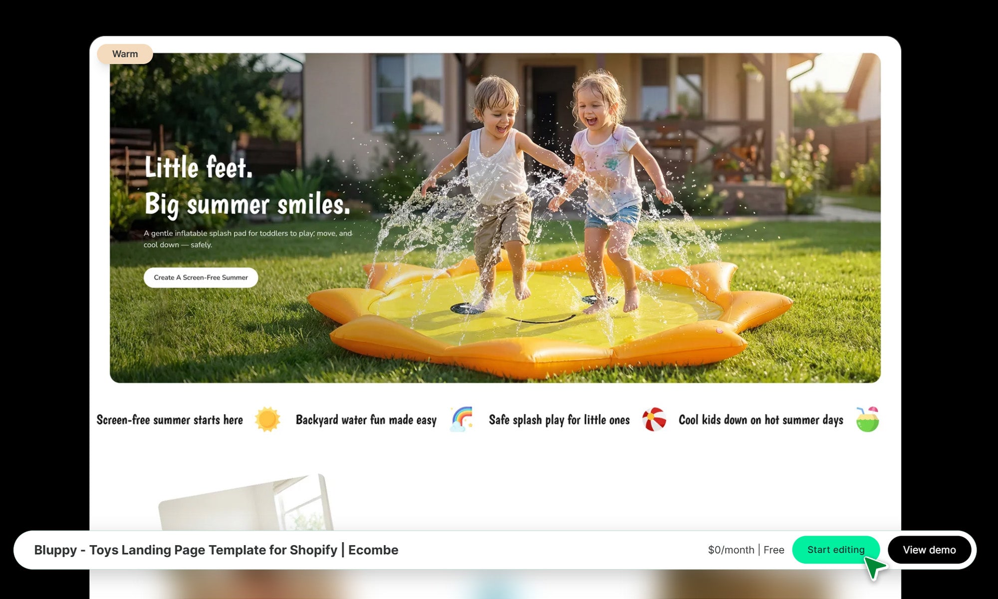 Bluppy Toys Landing Page template is a vibrant, summer-inspired layout designed to capture the high-energy joy of childhood. Specifically crafted for Shopify toys store websites, it transforms digital browsing into an immersive play experience that prioritizes fun and physical activity.