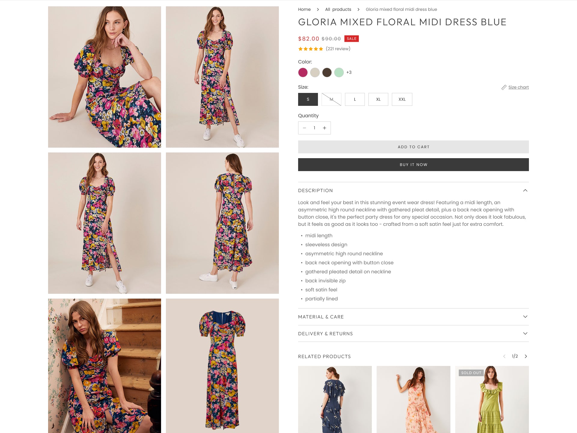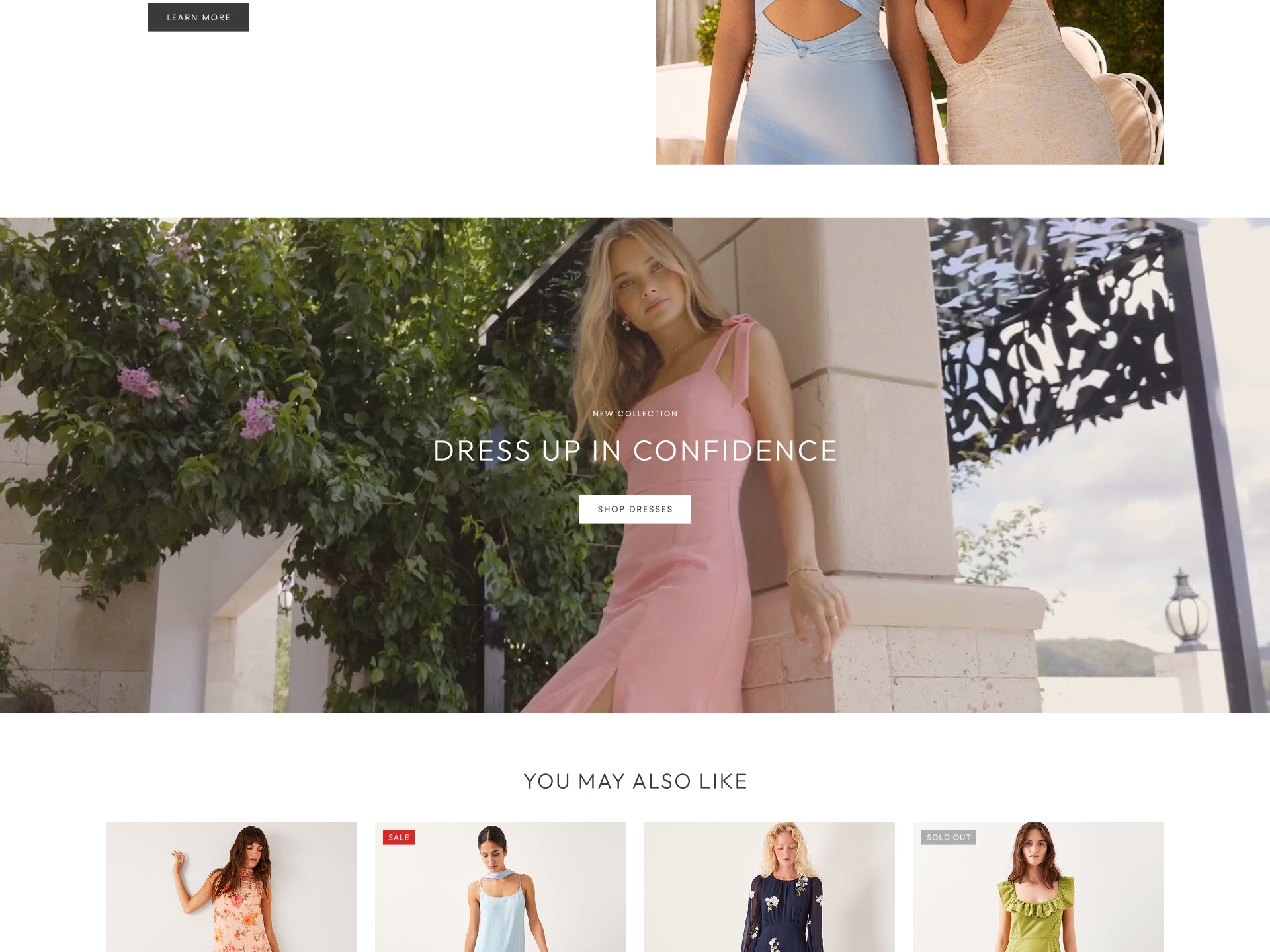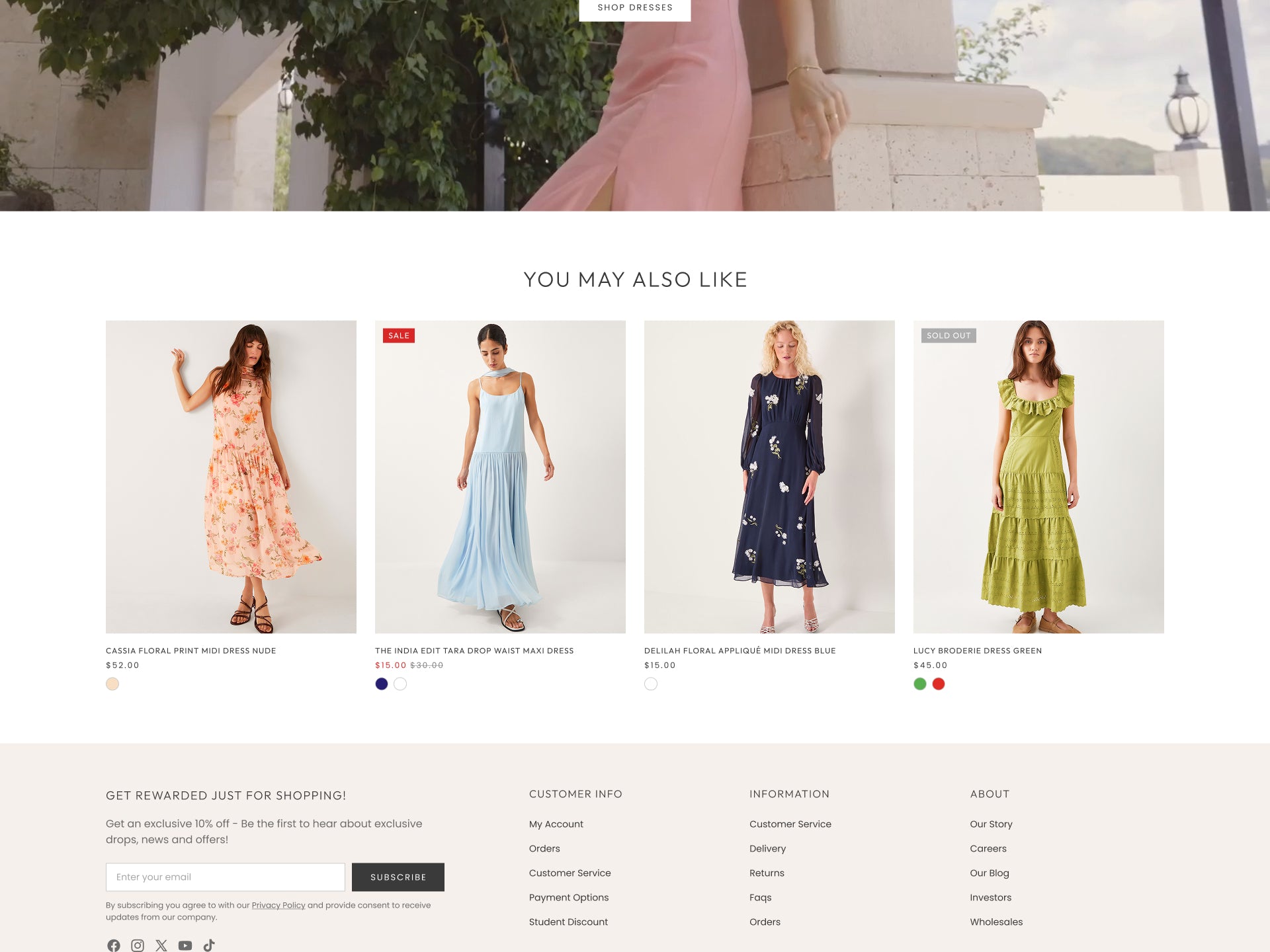 By combining strong visuals, contextual storytelling, and carefully curated product recommendations, the layout shows how each dress fits into real outfits and occasions. This approach reduces hesitation, encourages exploration, and helps shoppers feel certain they are choosing the right piece.