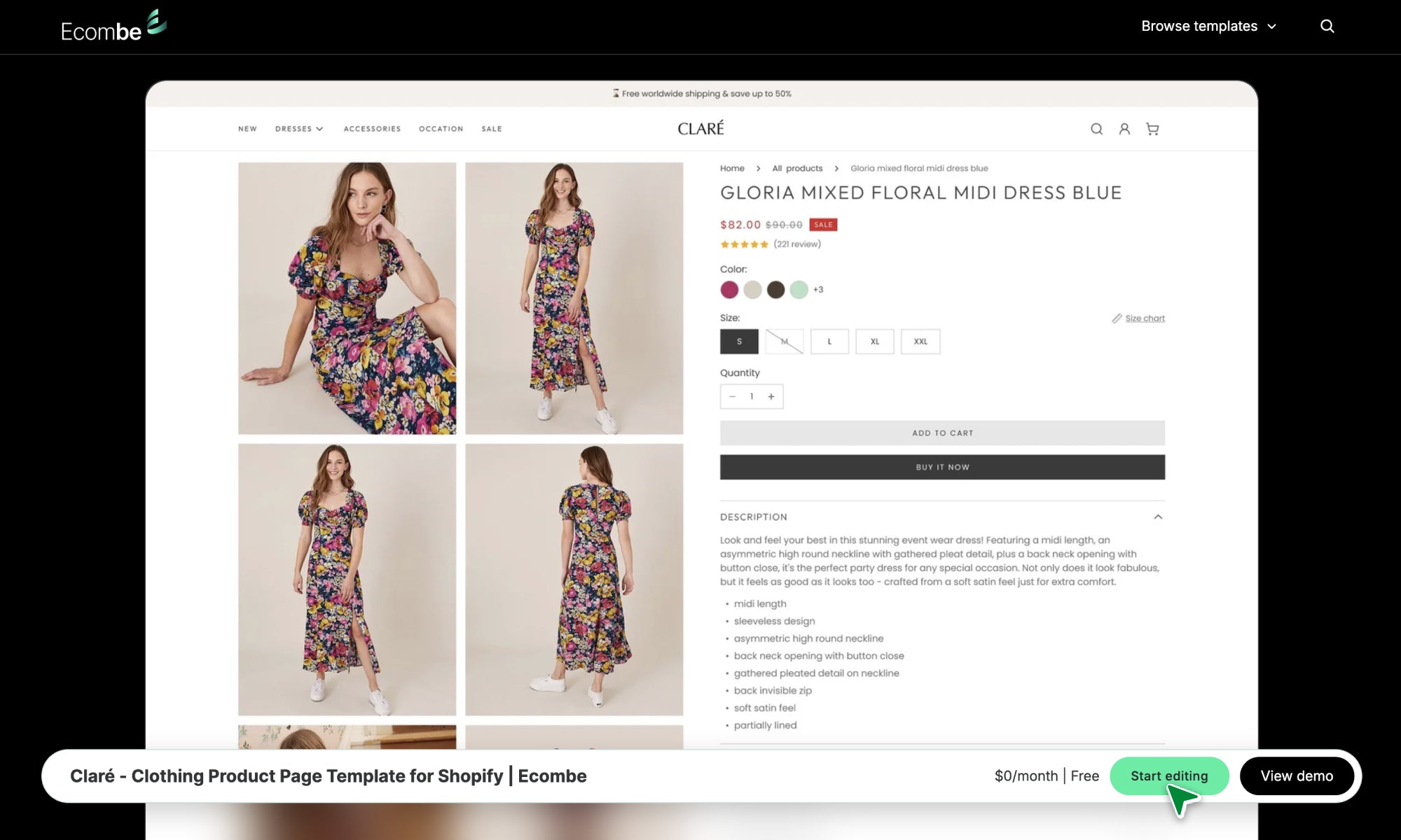 Claré - Clothing Product Page Template for Shopify | Ecombe
