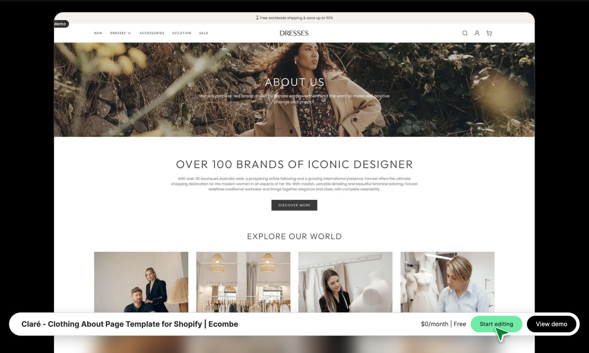 Claré - Clothing About Page Template for Shopify | Ecombe