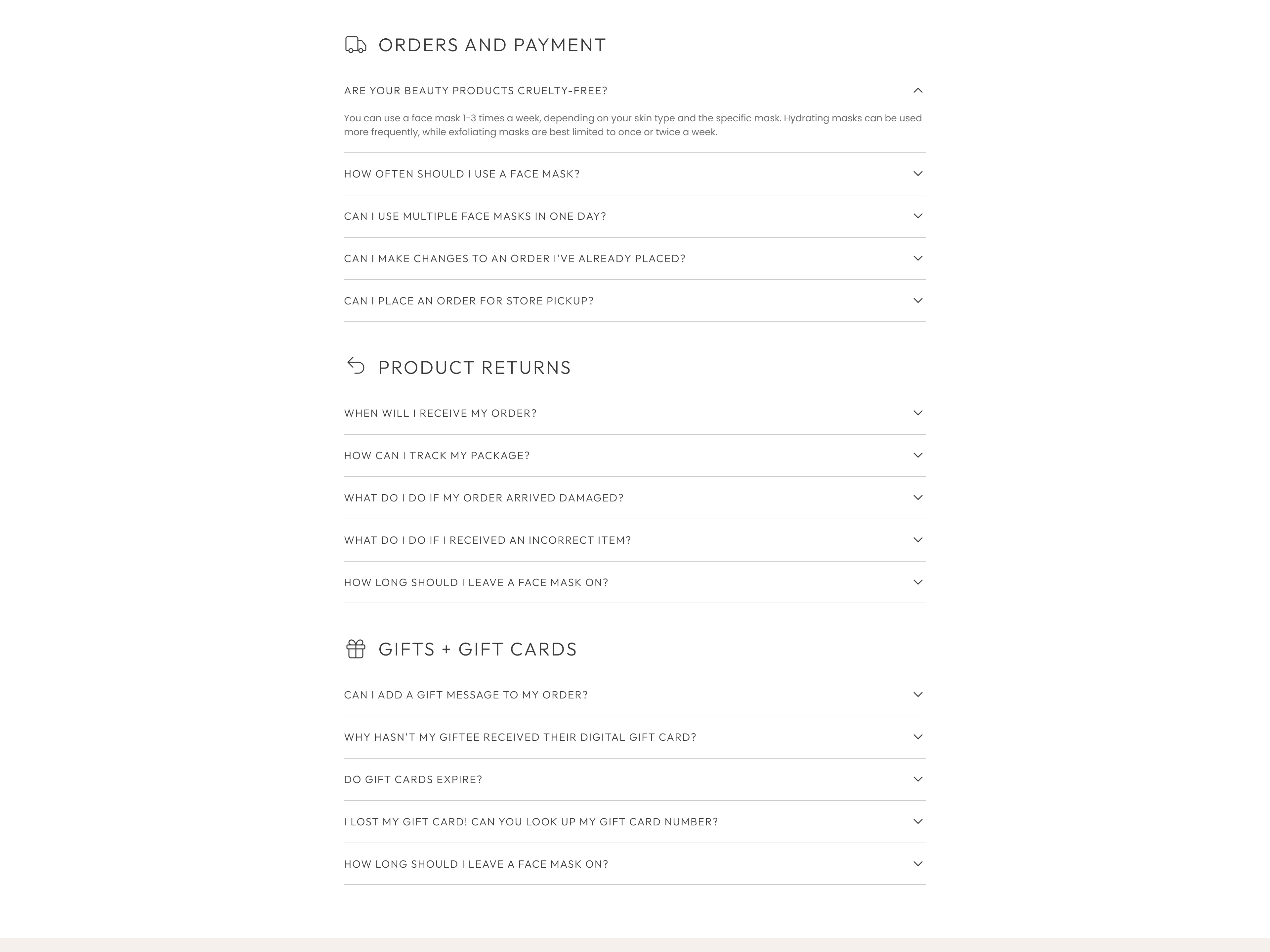 Claré Clothing FAQ Page is a dedicated support and clarity page built for Shopify Fashion Stores that want to reduce hesitation, prevent unnecessary support requests, and help shoppers feel confident before placing an order. The layout is designed to present answers with clearly, logically, and without overwhelming visitors, making it easy to scan and understand.