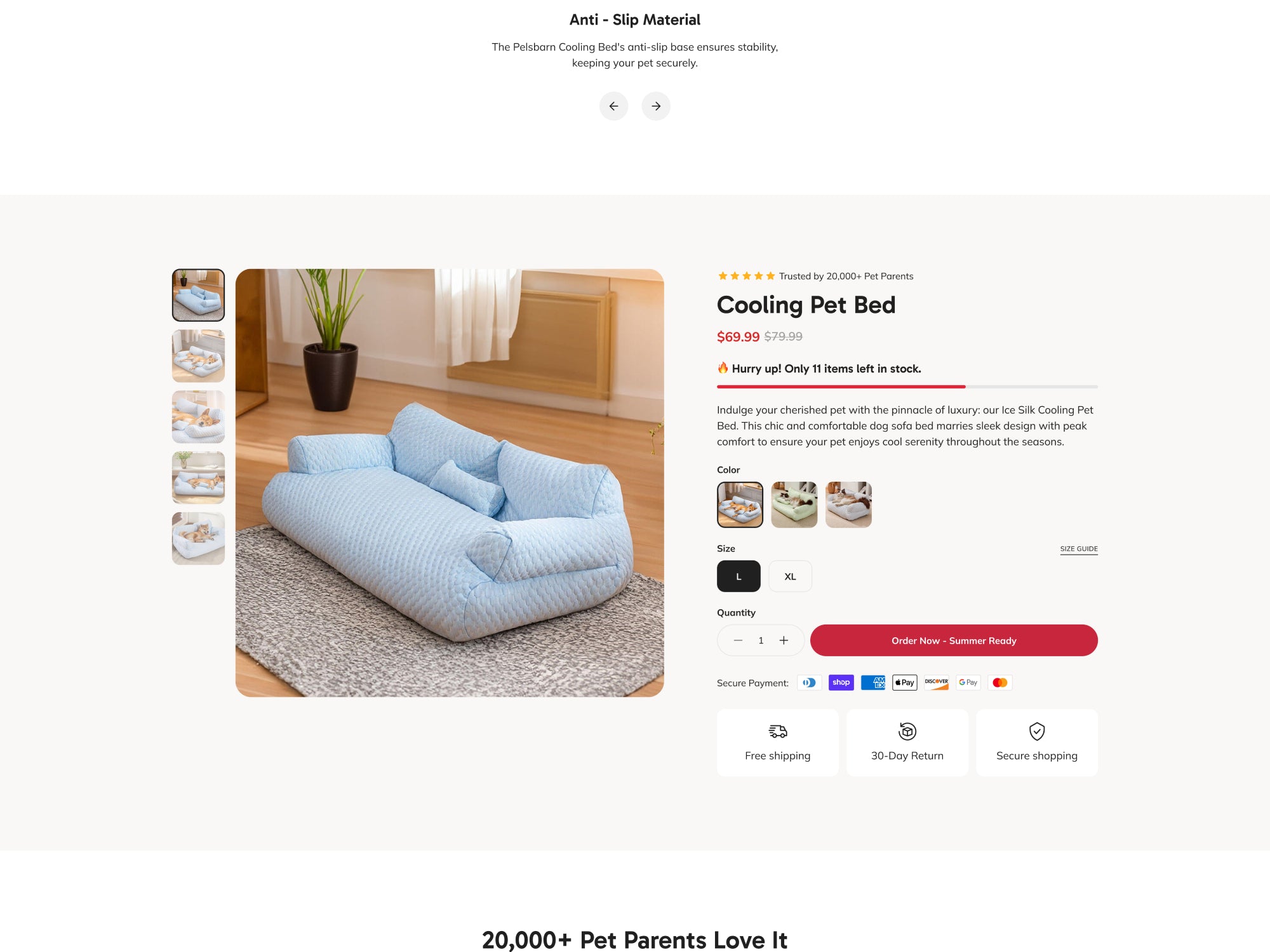CoolNest Pets Landing Page Template is a product landing page solution designed for Shopify Pet Stores selling seasonal pet comfort products, especially cooling beds and cooling mats for summer use. The page structure focuses on helping pet owners recognize heat discomfort early, even when it does not yet feel urgent.