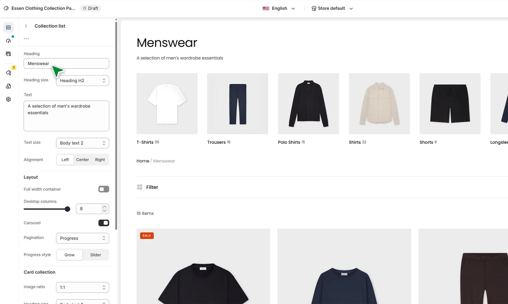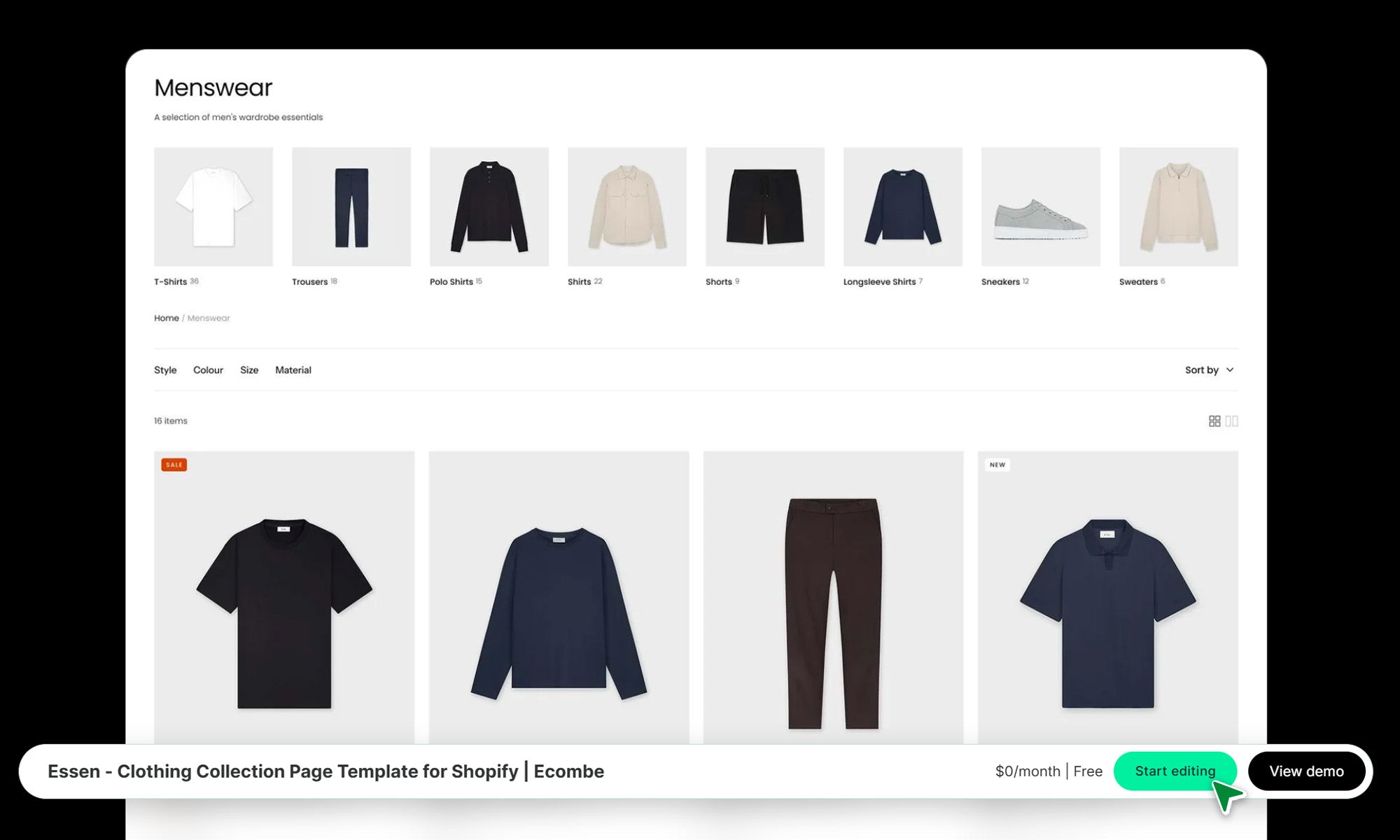 Essen - Clothing Collection Page Template for Shopify | Ecombe