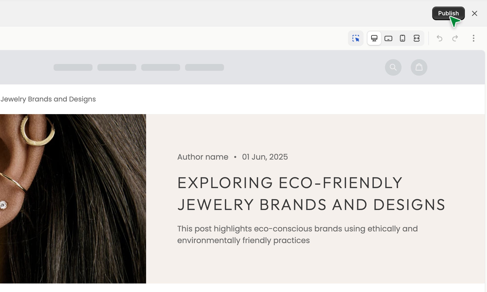 Jewelry brands using editorial content to share styling inspiration, craftsmanship stories, and brand values while maintaining an elegant, uninterrupted reading experience.
