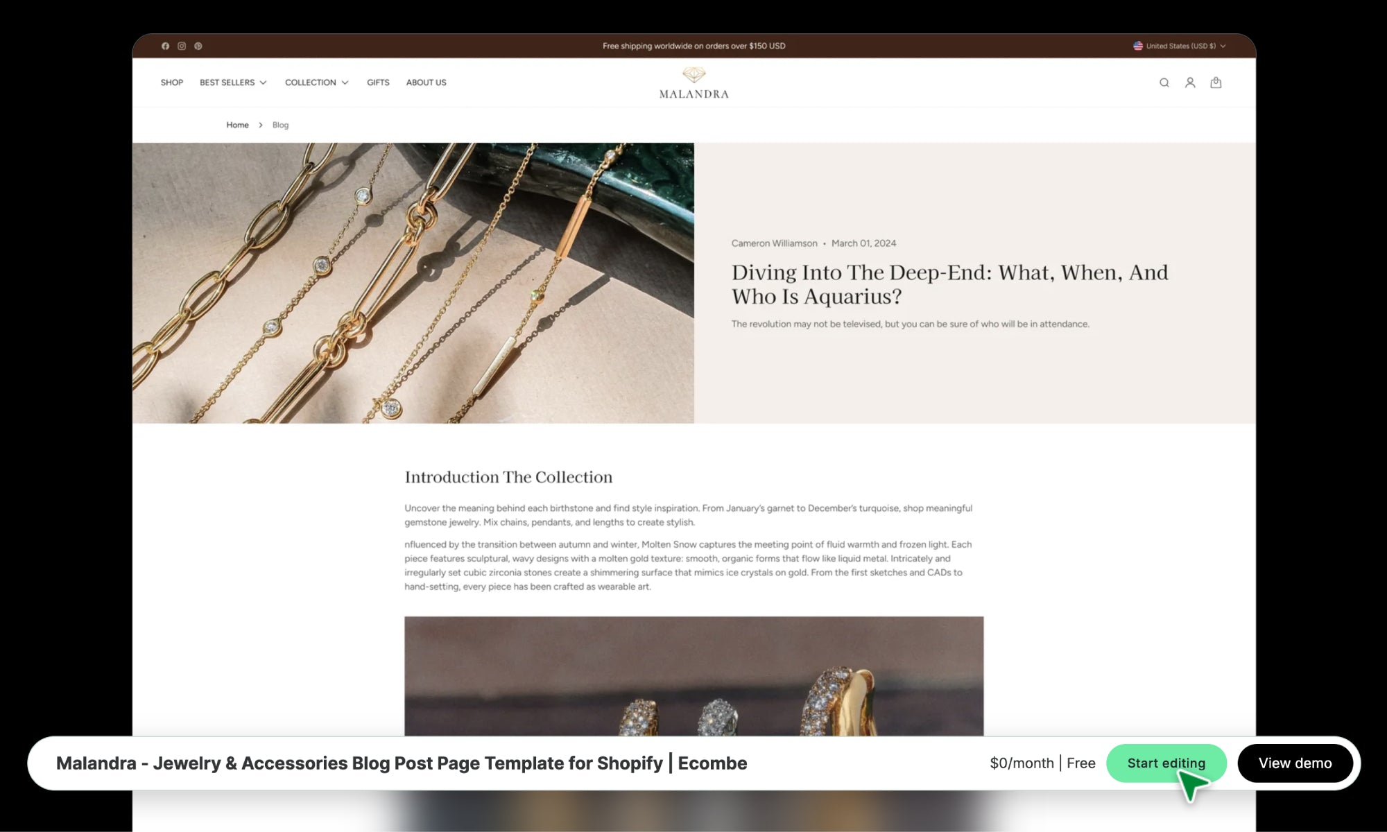 Malandra - Jewelry & Accessories Blog Post Page Template for Shopify | Ecombe