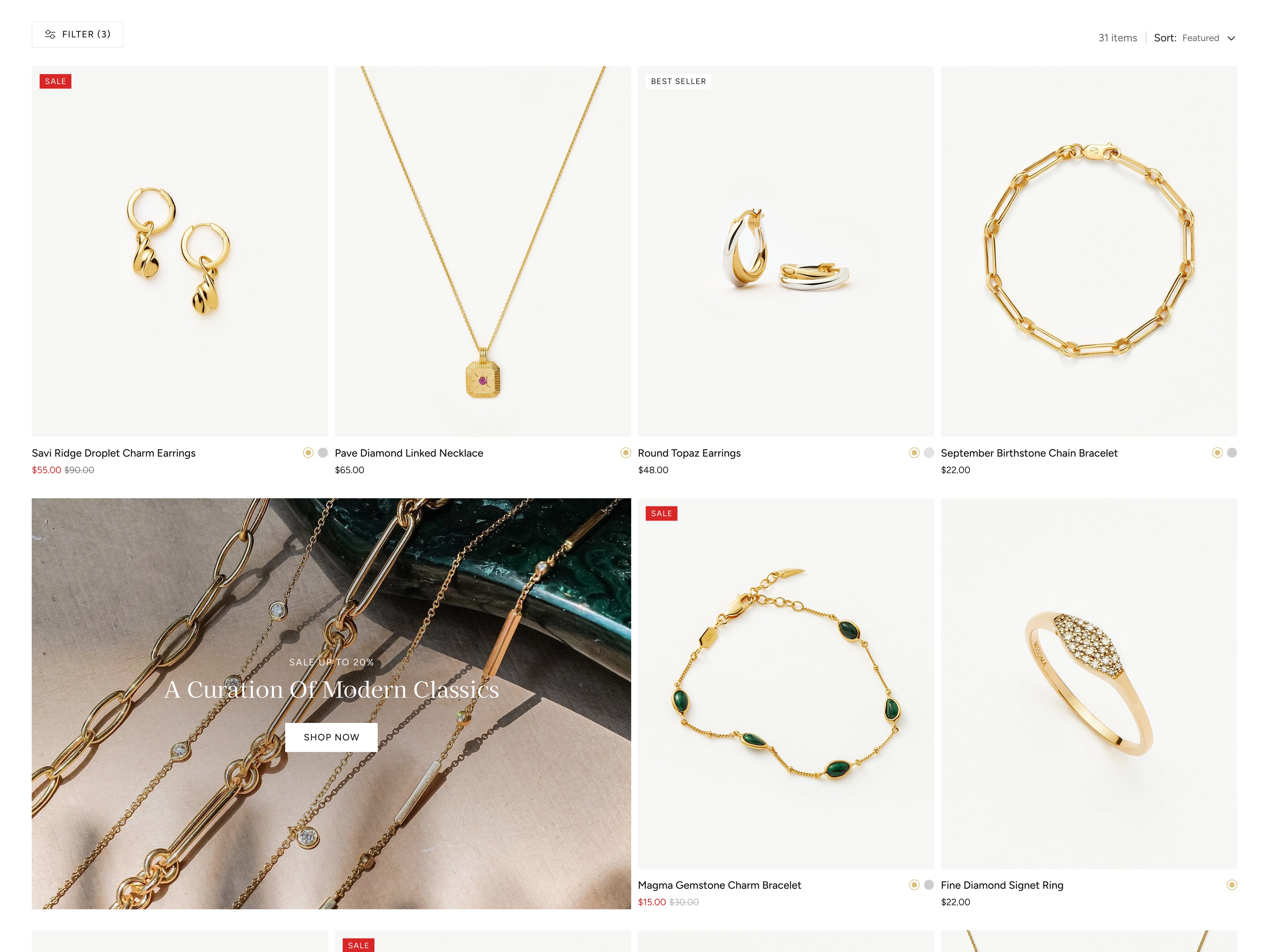 - Jewelry and accessories brands that want a clean, elegant collection page to showcase multiple products clearly while maintaining a refined, premium brand presentation.