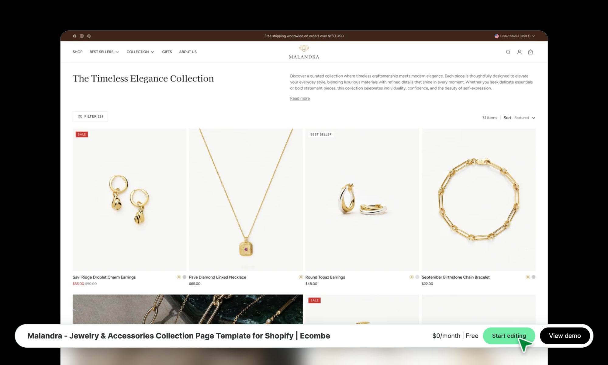 Malandra - Jewelry & Accessories Collection Page Template for Shopify | Ecombe