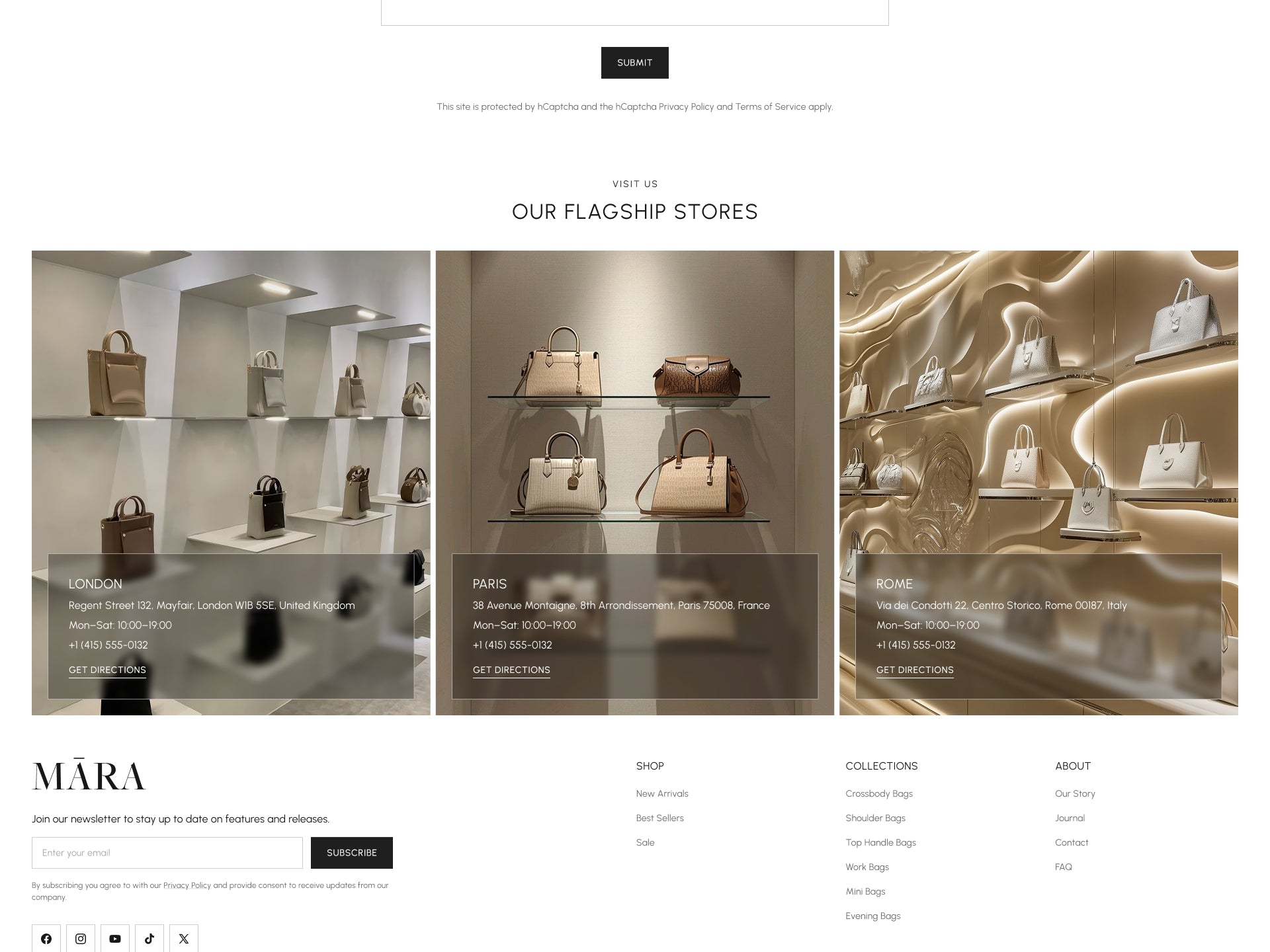 Mara Bags Contact Page is designed to remove hesitation at the final stage of the customer journey by offering clear, reassuring contact pathways for a premium Shopify handbags brand. Instead of feeling like a support form, the page reinforces presence, accessibility, and brand credibility for any online purse store.