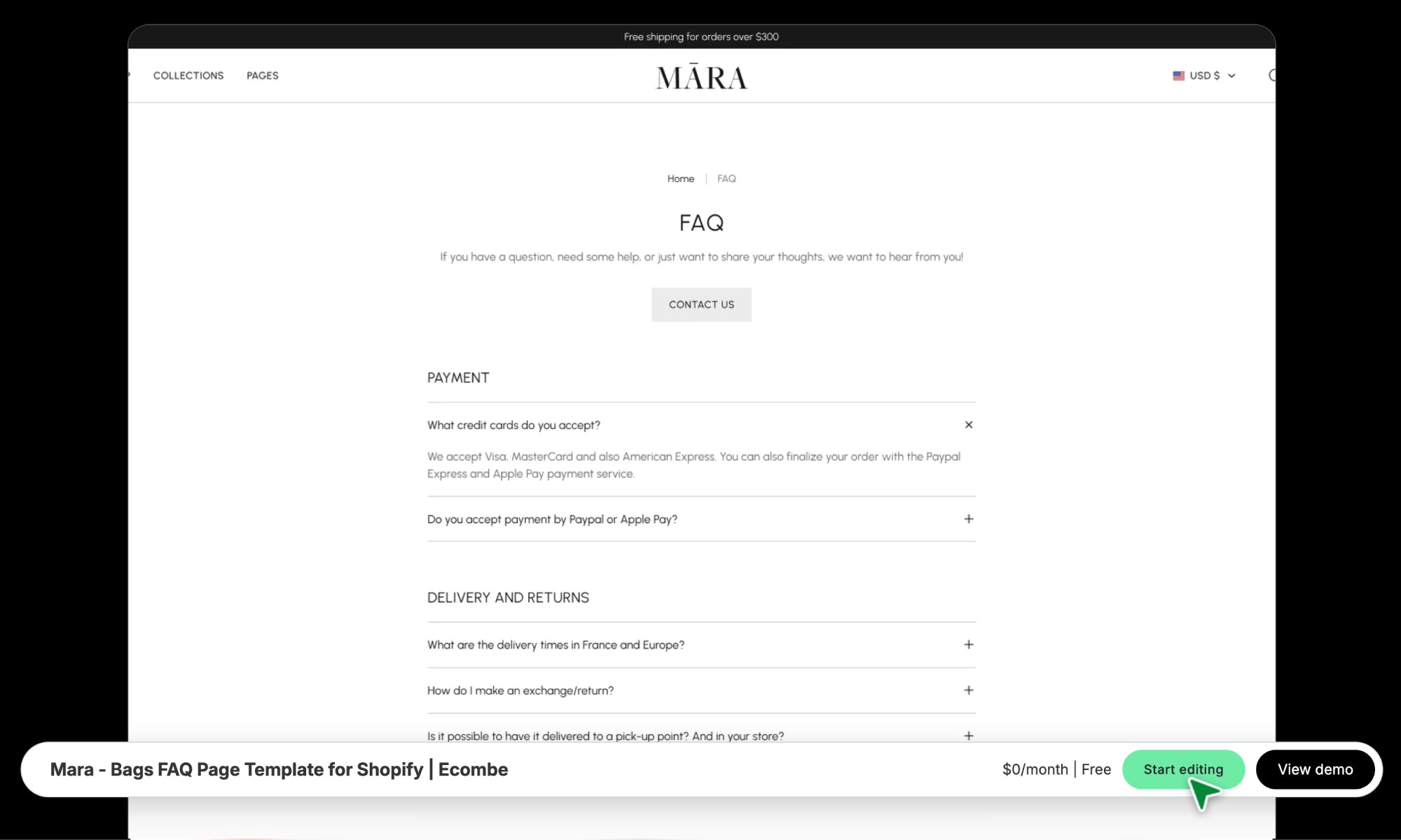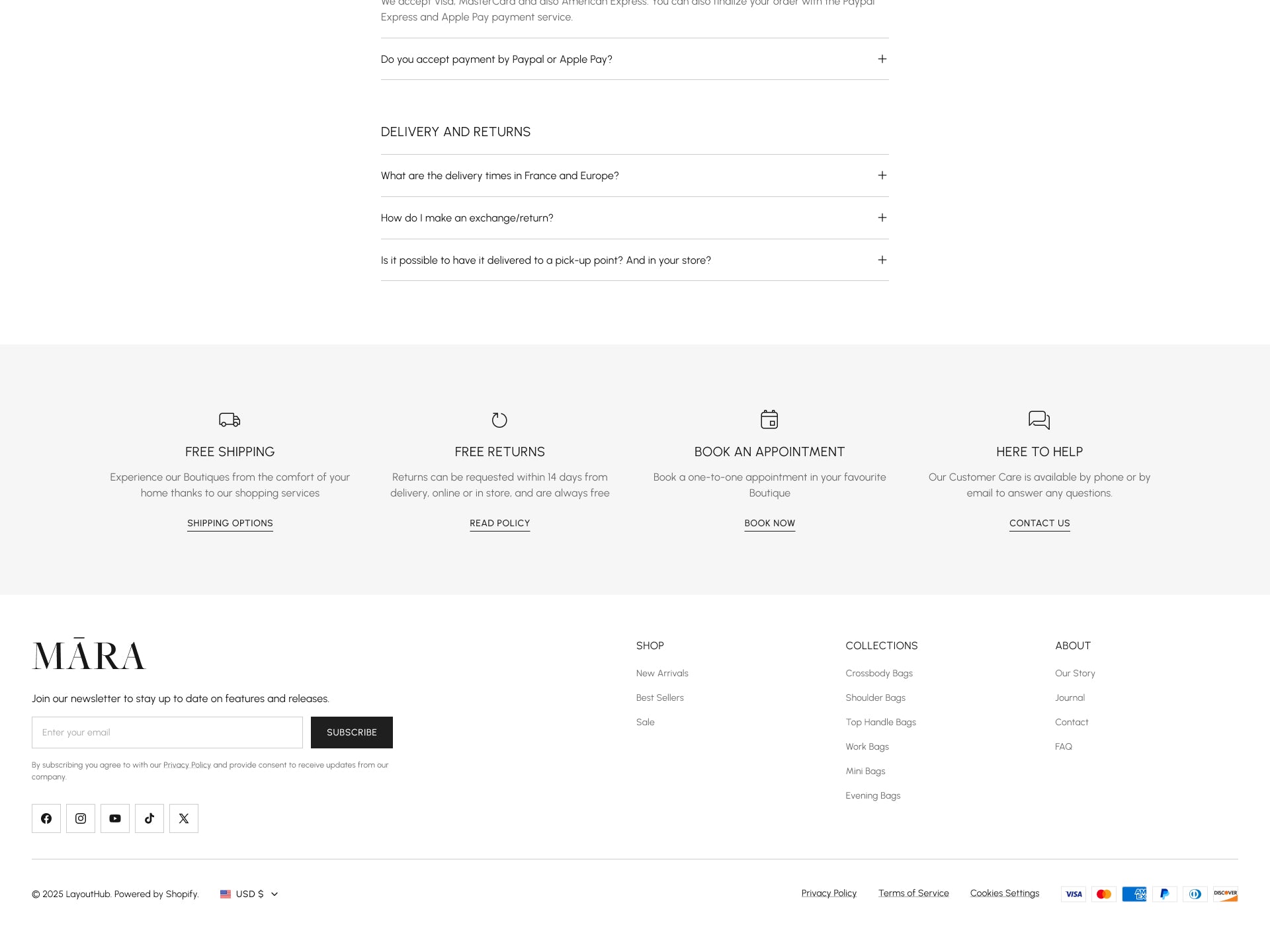Mara - Bags FAQ Page Template for Shopify | Ecombe