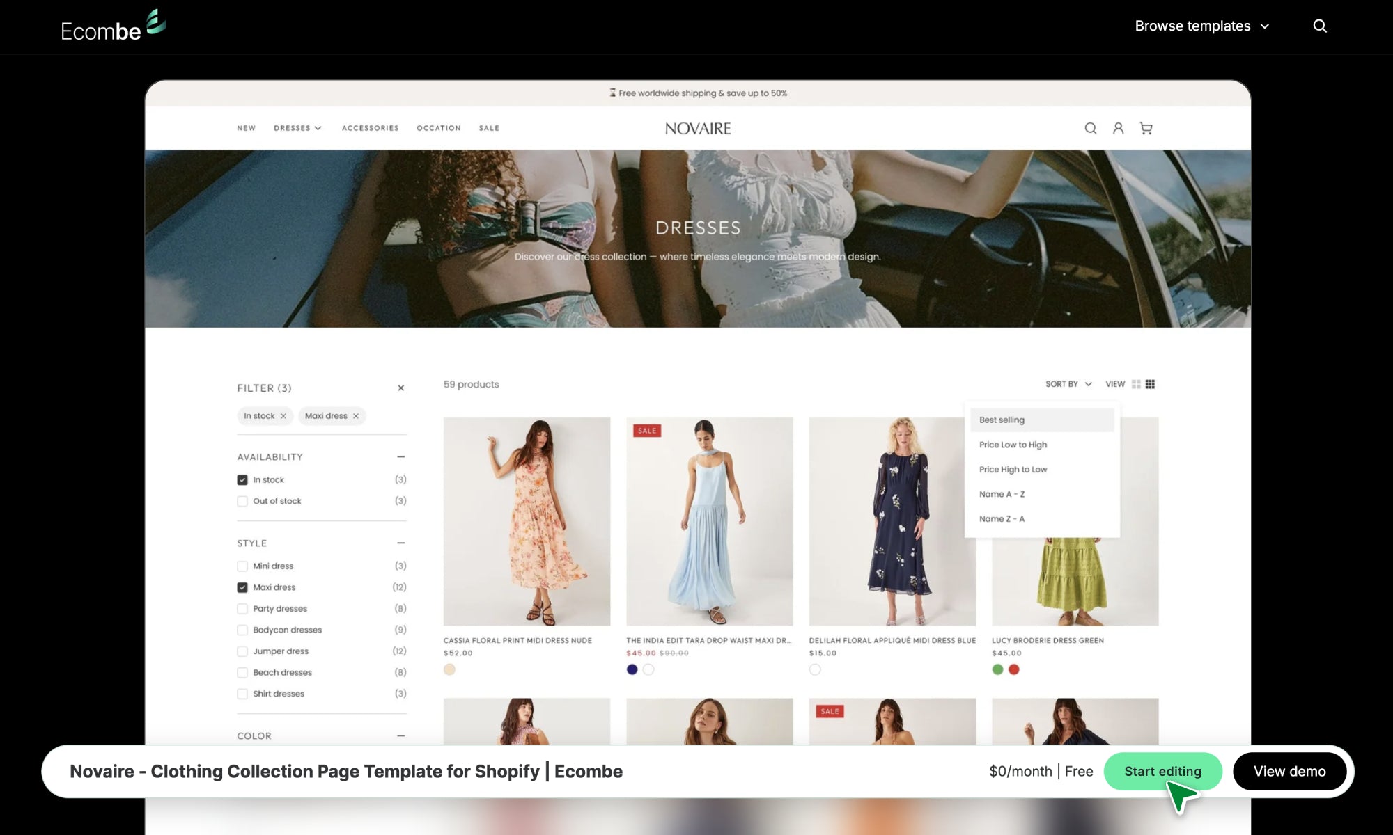 Novaire - Clothing Collection Page Template for Shopify | Ecombe