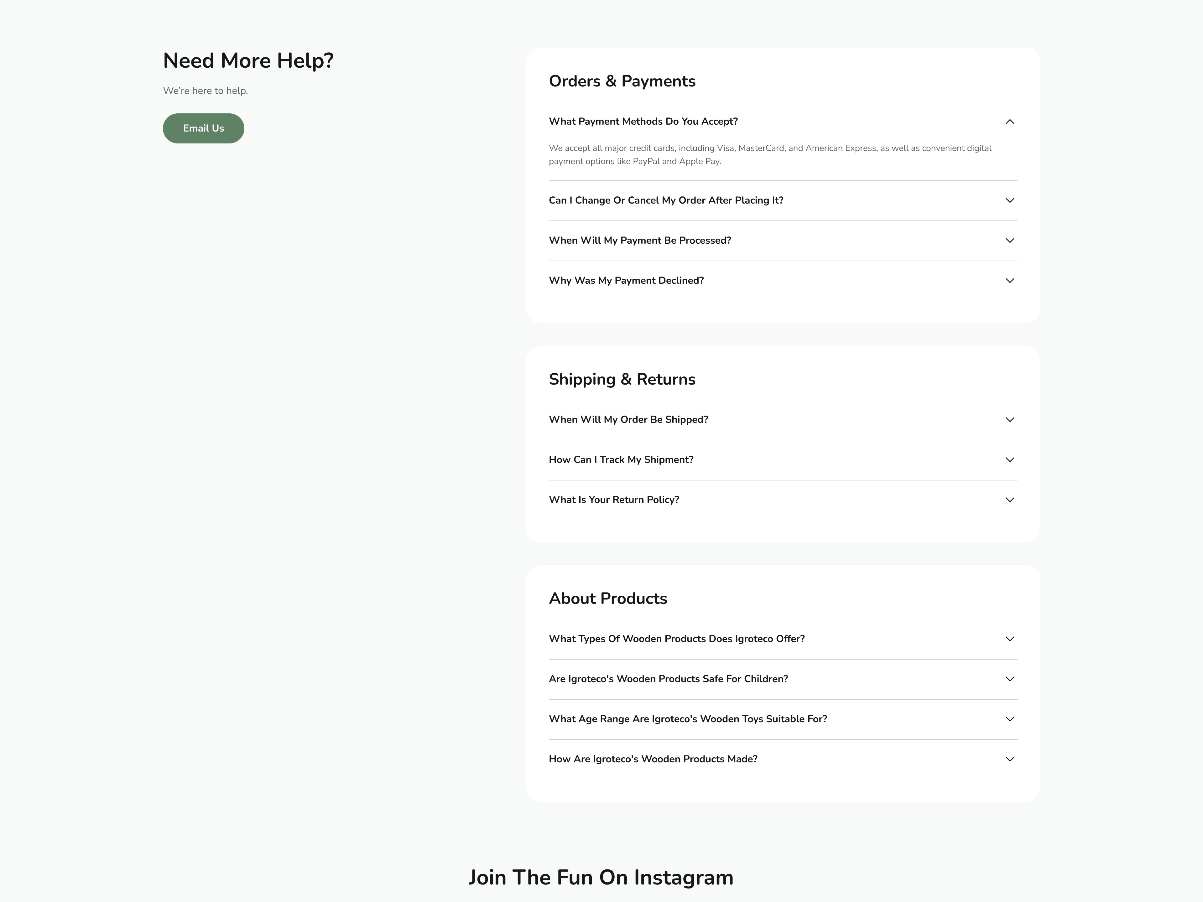Built for a Shopify toys store, this page organizes essential information into easy-to-scan sections, reducing uncertainty and helping shoppers feel confident about safety, suitability, and policies.