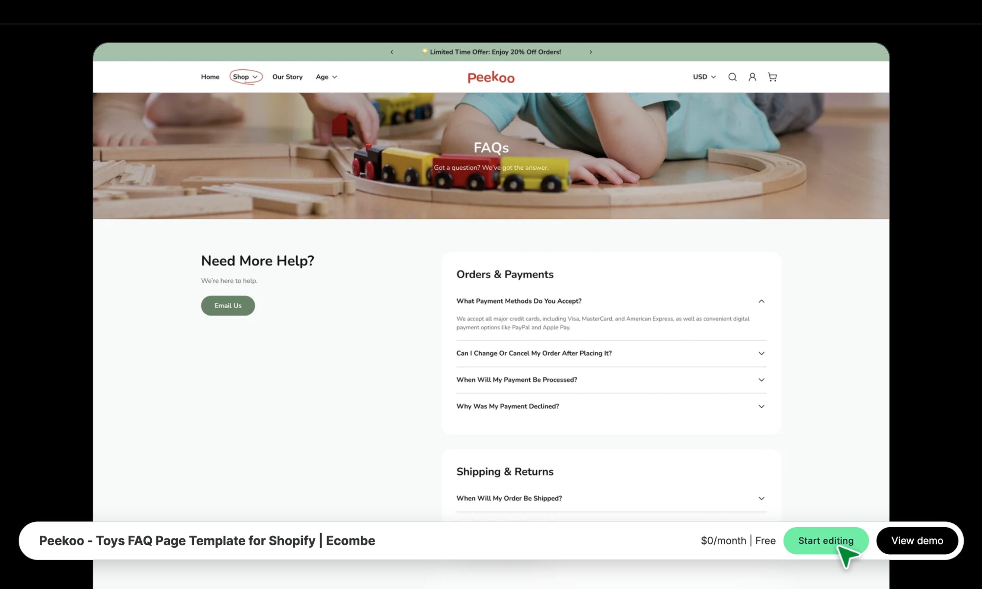 Peekoo - Toys FAQ Page Template for Shopify | Ecombe