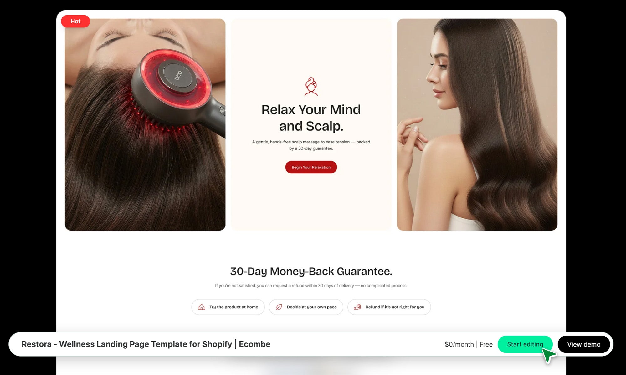 Restora Wellness Landing Page template is a trust-focused solution specifically designed for Shopify self-care websites. It bridges the gap between initial interest and final checkout by prioritizing authentic social proof and clear value propositions over complex brand storytelling.