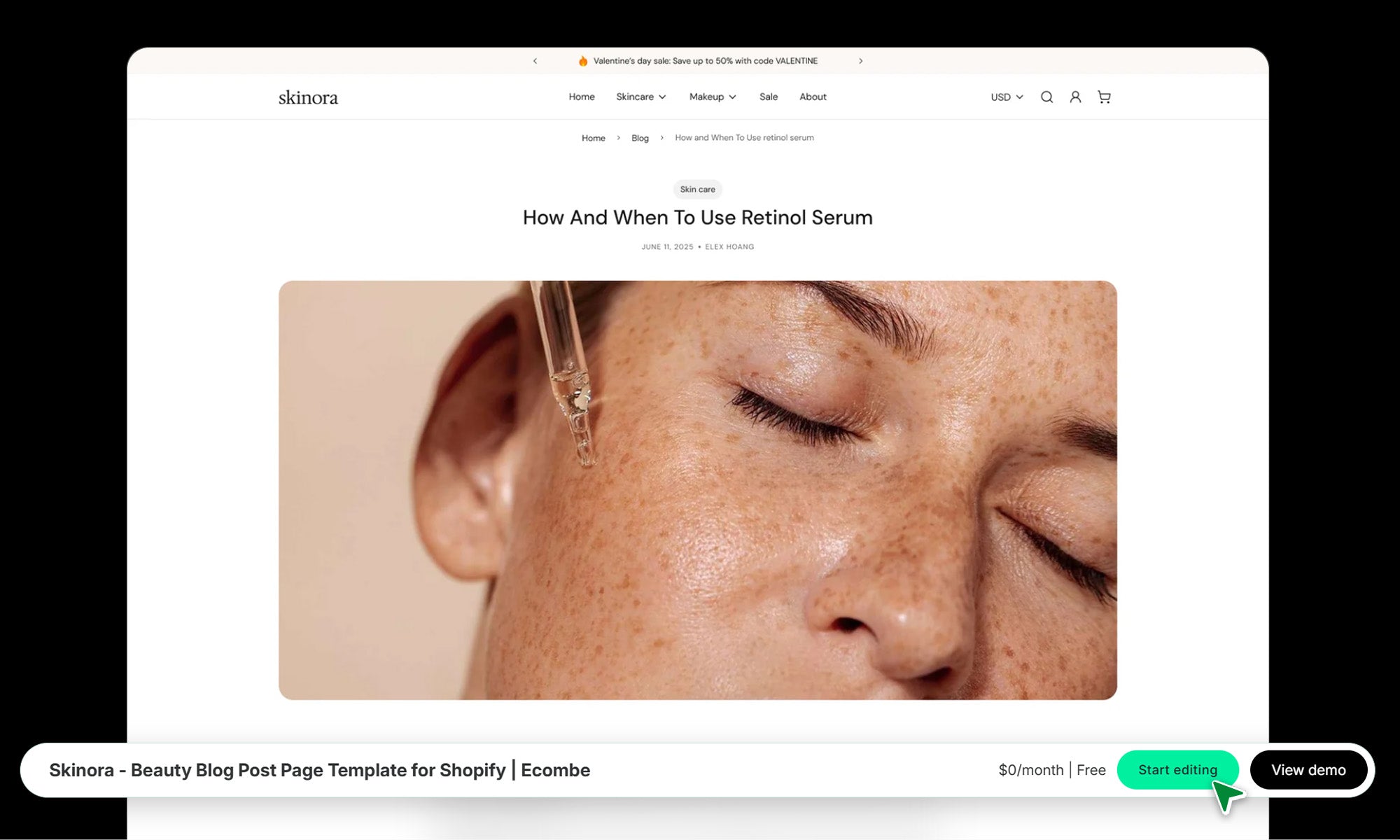 Skinora - Beauty Blog Post Page Template for Shopify | Ecombe