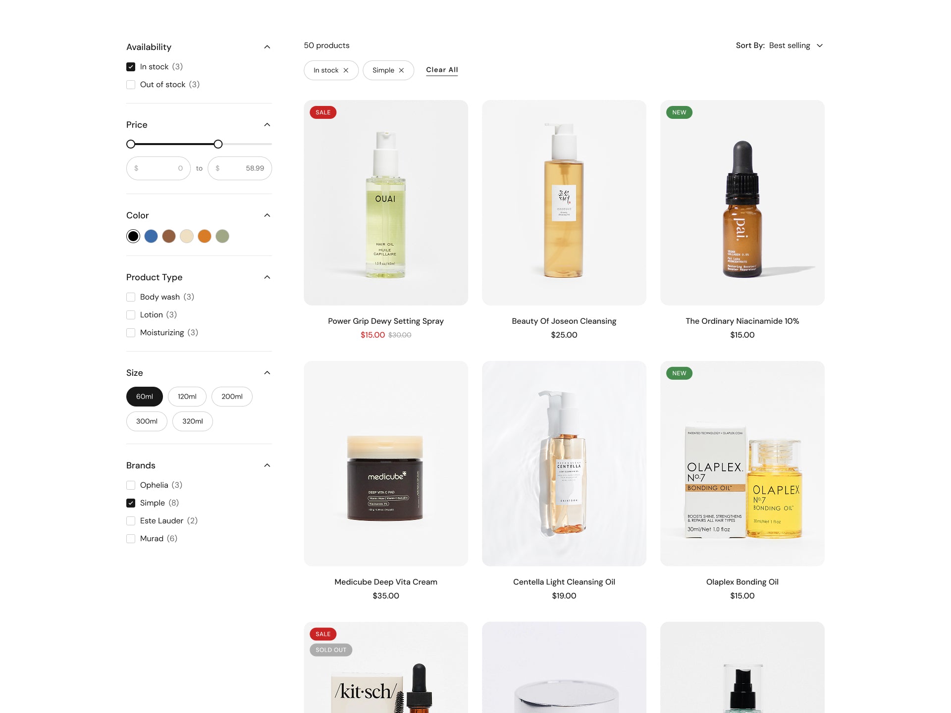 By combining clear collection context, intuitive filtering, and editorial-style product presentation, the page helps shoppers quickly find products suited to their needs while reinforcing trust and brand quality across any Shopify cosmetics website.