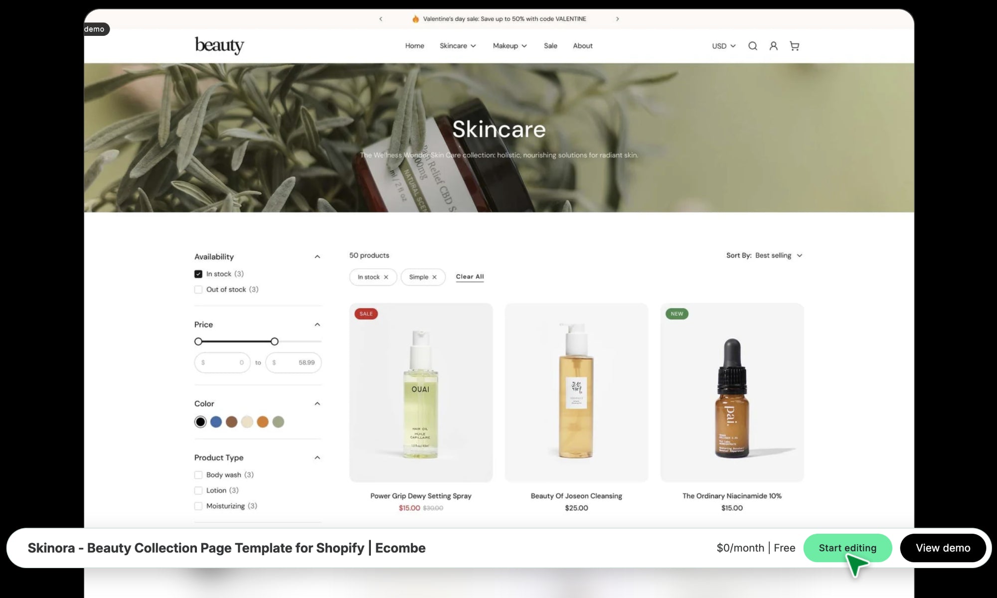 Skinora - Beauty Collection Page Template for Shopify | Ecombe