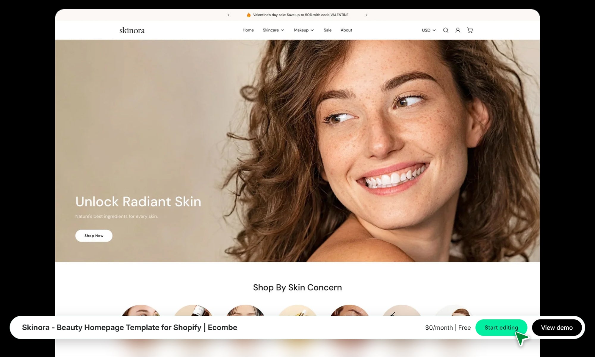 Skinora - Beauty Homepage Template for Shopify | Ecombe