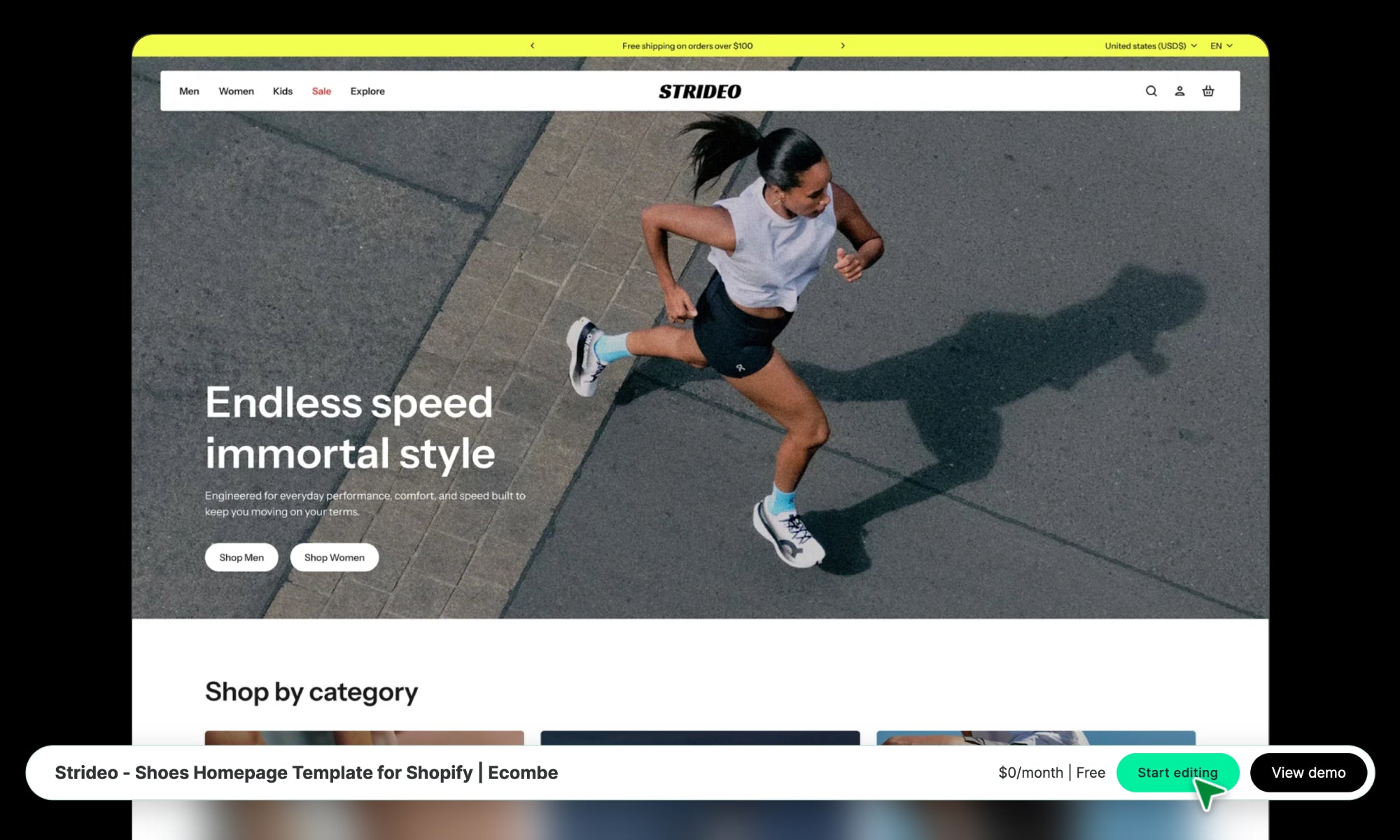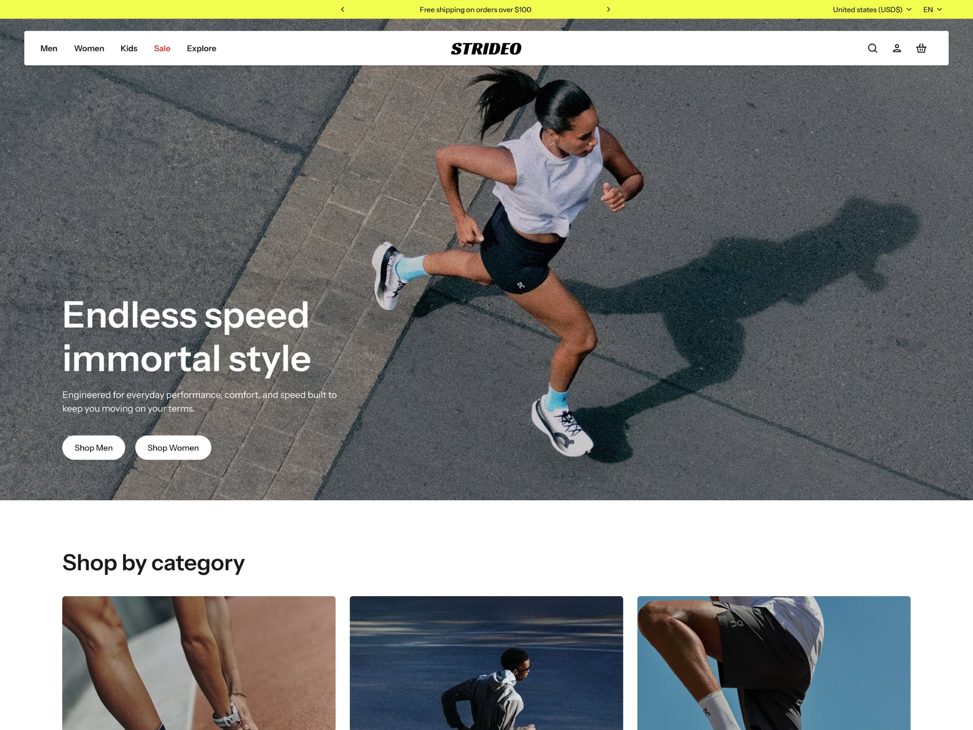 Strideo - Shoes Homepage Template for Shopify | Ecombe