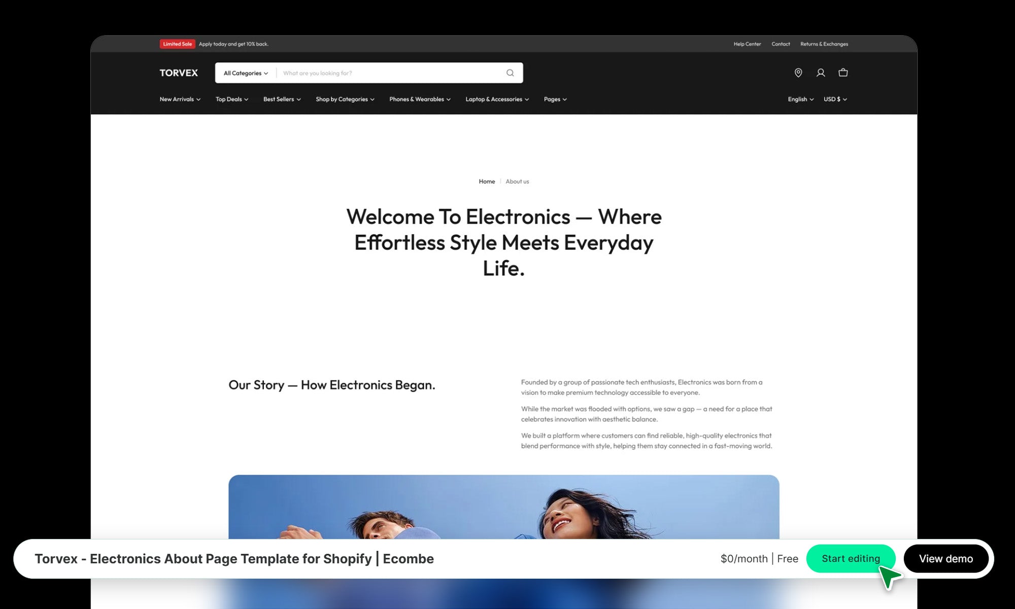 Torvex - Electronics About Page Template for Shopify | Ecombe