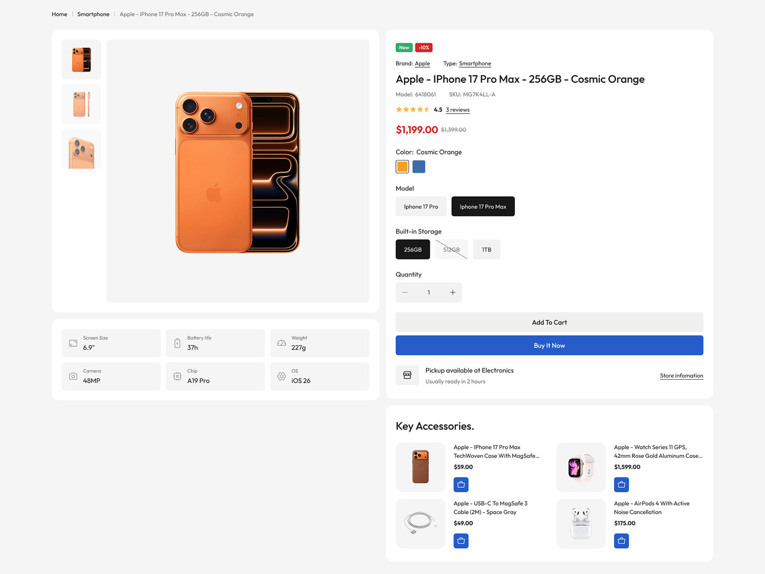 - Brands require a robust visual hierarchy to showcase intricate product specs, technical features, and high-quality gadget imagery.