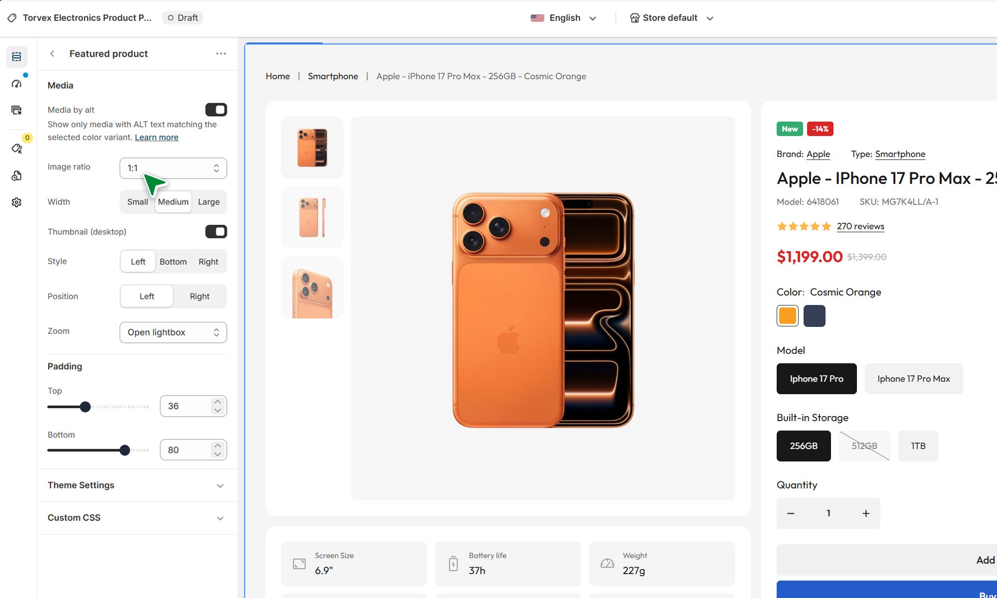 Torvex - Electronics Product Page Template for Shopify | Ecombe