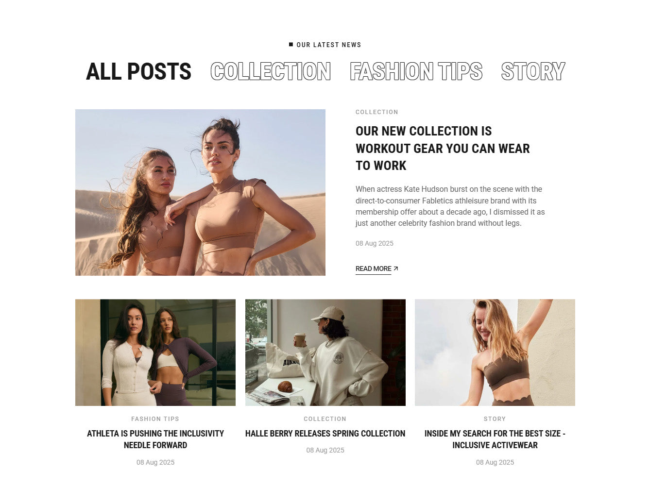 Virelle Clothing Blog Page is the essential content architecture for the dynamic Shopify fitness store. It elevates your collection of articles from a simple list into an organized, high-impact editorial hub. This template is designed for visual storytelling, ensuring your guides on fit, performance, and style are easily discovered and consumed.