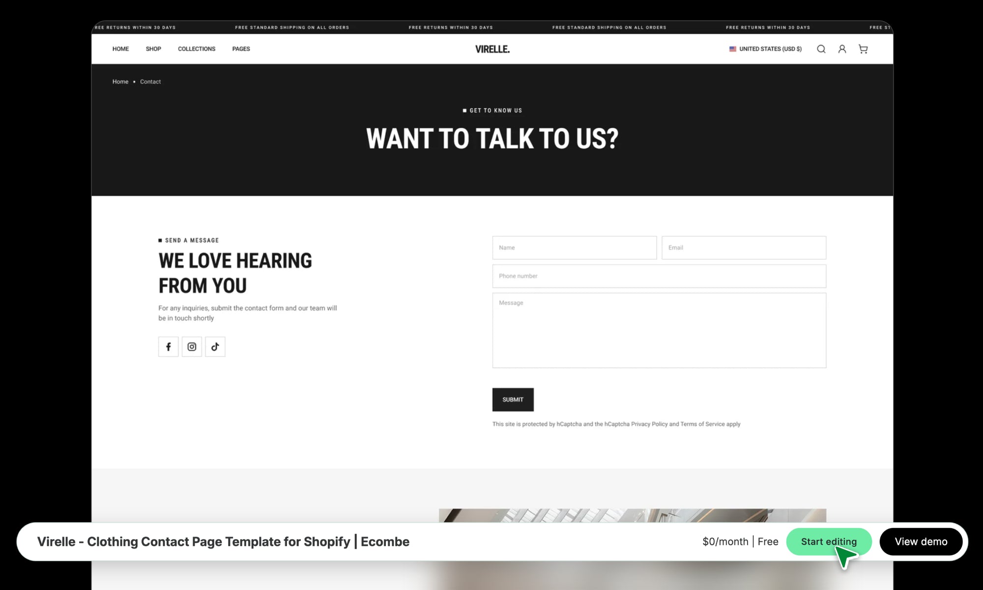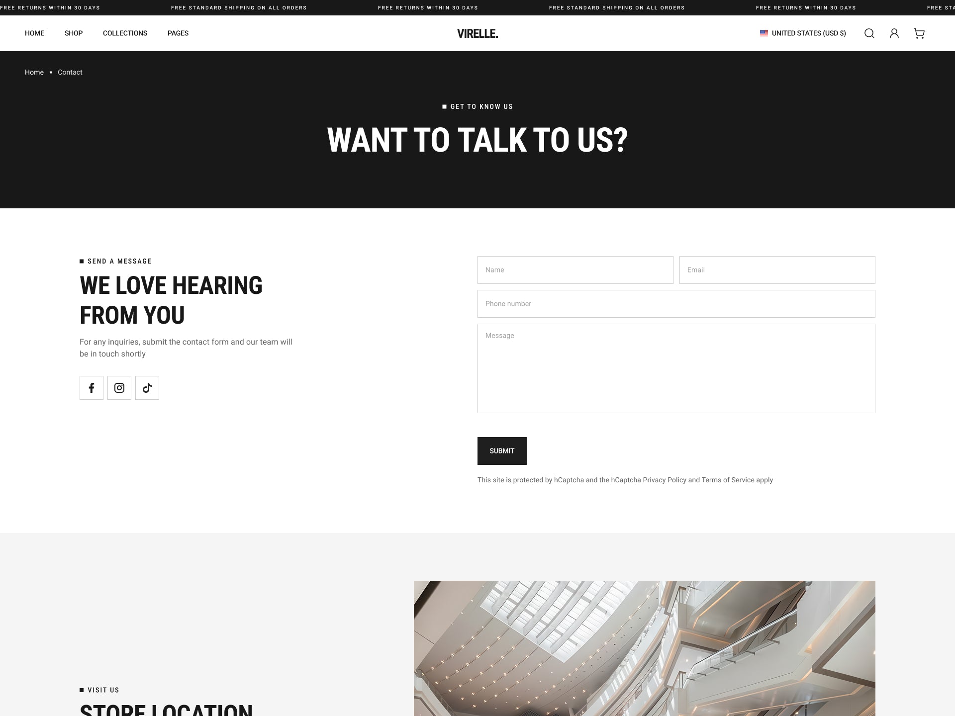 Virelle - Clothing Contact Page Template for Shopify | Ecombe