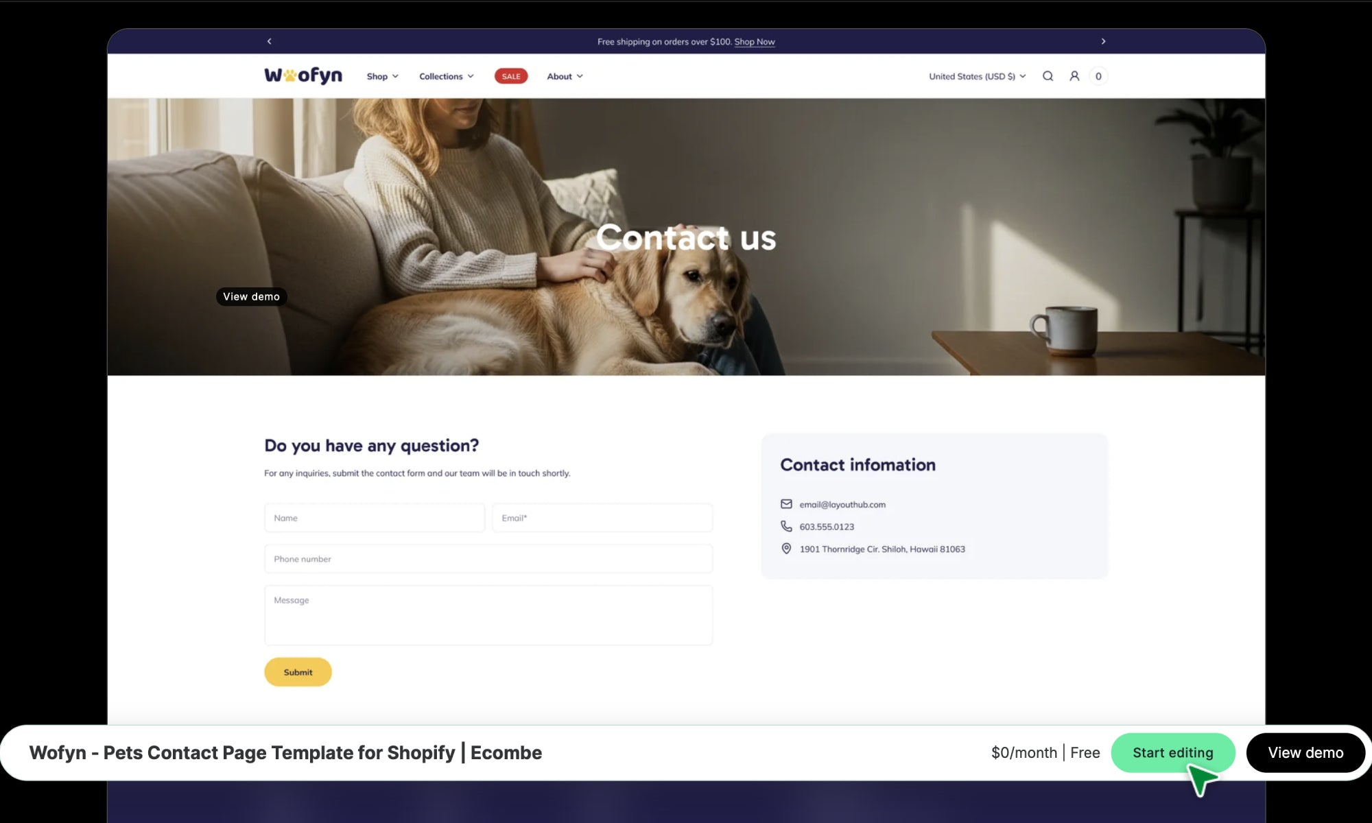 Wofyn - Pets Contact Page Template for Shopify | Ecombe